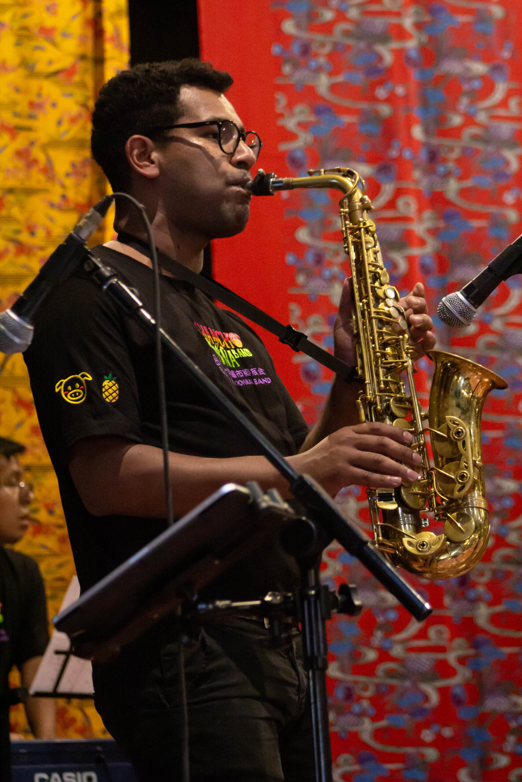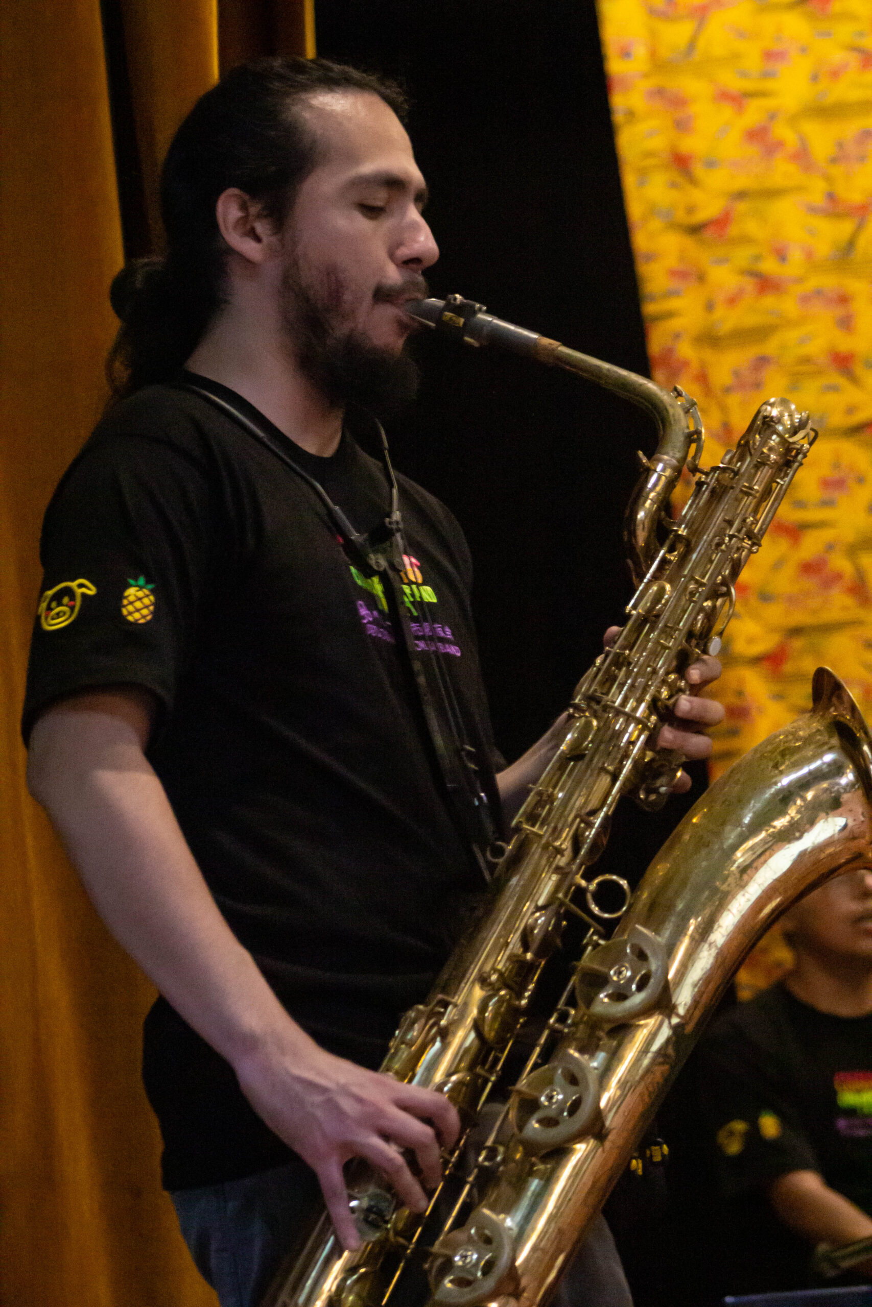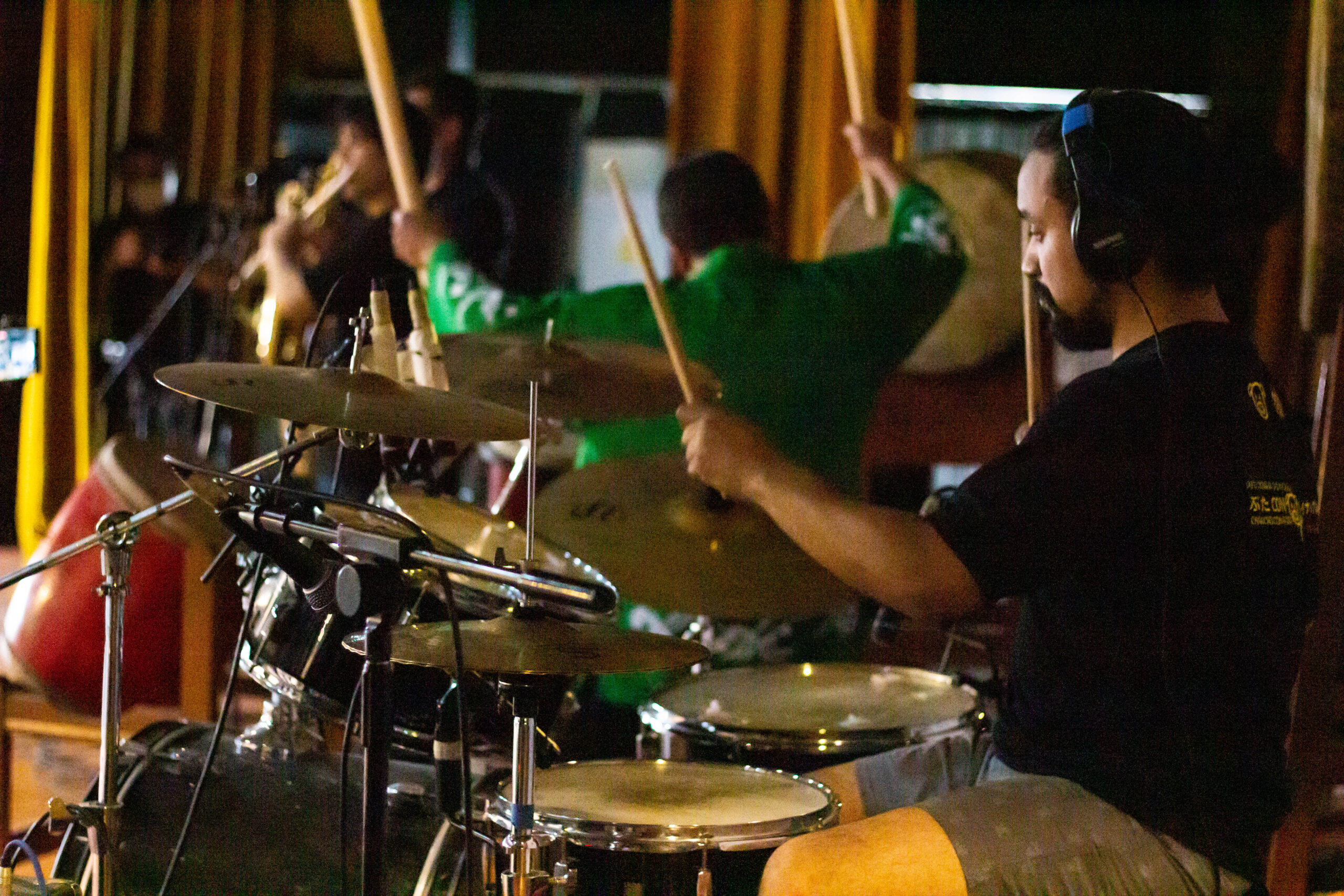 Usamos instrumentos modernos occidentales como guitarras, bajos, batería; instrumentos de percusión latinos como congas, timbales, güiro; instrumentos clásicos como saxofones, violín y flauta traversa, eventualmente cellos; e instrumentos tradicionales peruanos y japoneses como taiko, bombo, sanshin, shamisen y charango.